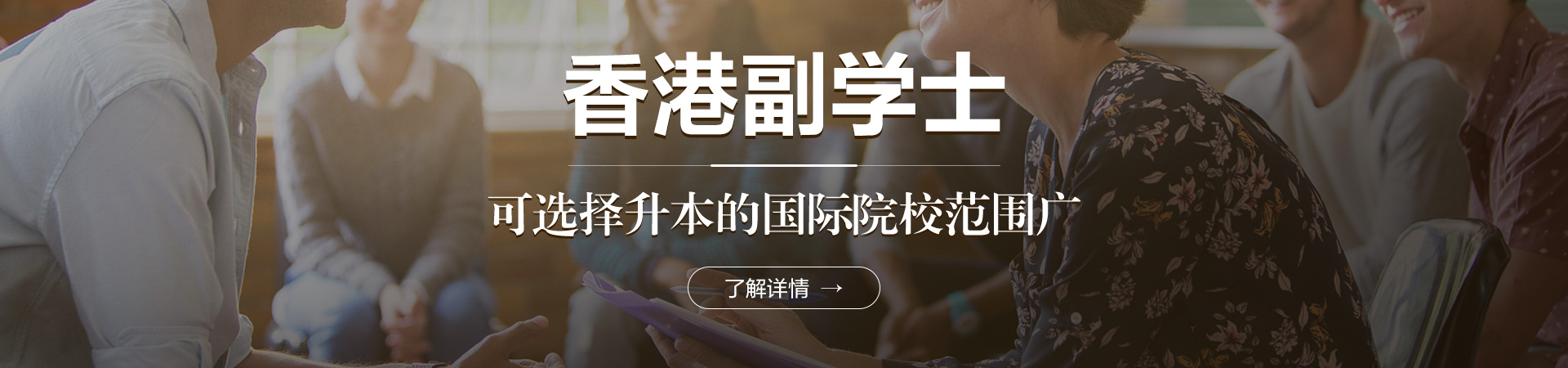 項目詳細咨詢副學位是源于美國和加拿大的學位等級,由大學里的相關學院提供,相當于本科的前兩年,一般分為文科副學士、理科副學士。成功修畢兩年副學士課程的畢業生,可考慮申請報讀該校本科或香港其他大學學士學位本科課程三年級,2年即可取得本科學士學位。